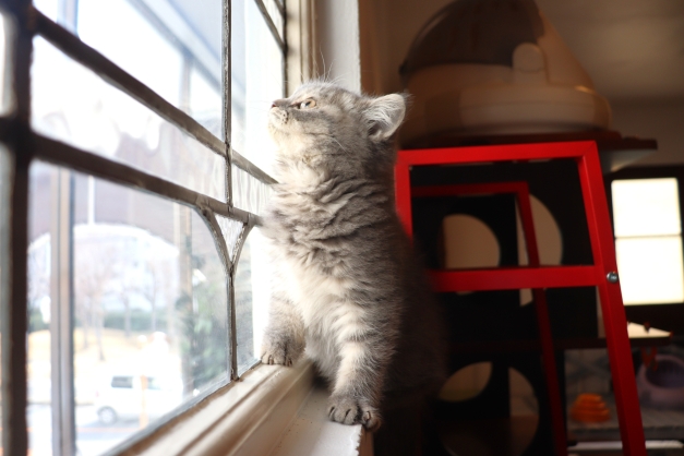 最近は仔猫ちゃん部屋に居るときに店内に人が来るとぴょこんと顔を出してのぞいてくるようになりました(@^▽^@)