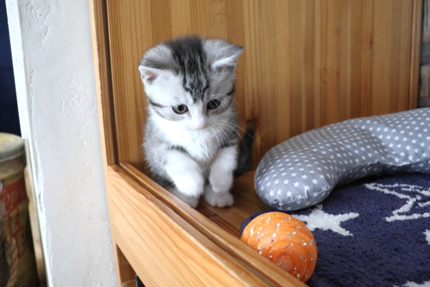 初めてのボールにびっくり!マンチカンの仔猫ちゃん(≧Д≦)